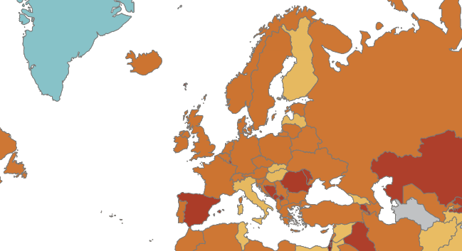 Wat we natuurlijk wel kunnen doen is kijken waar het corona virus toen rond ging volgens het ECDC (het 'Europese RIVM'):.